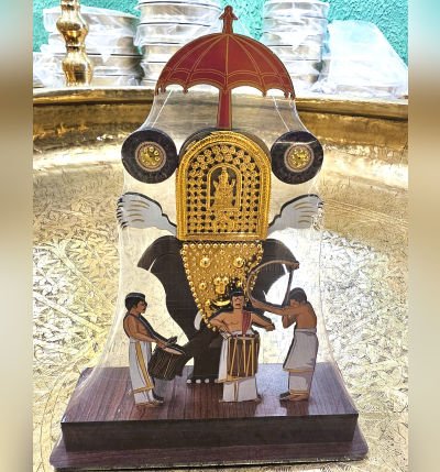 Perfect for Mementos traditional home décor, cultural gifting, or as a souvenir for Kerala tourism events, this showpiece appeals to heritage enthusiasts, festival organizers, tourists, and gift buyers. Whether placed on a desk, shelf, or reception counter, it serves as both an art object and a cultural conversation starter.