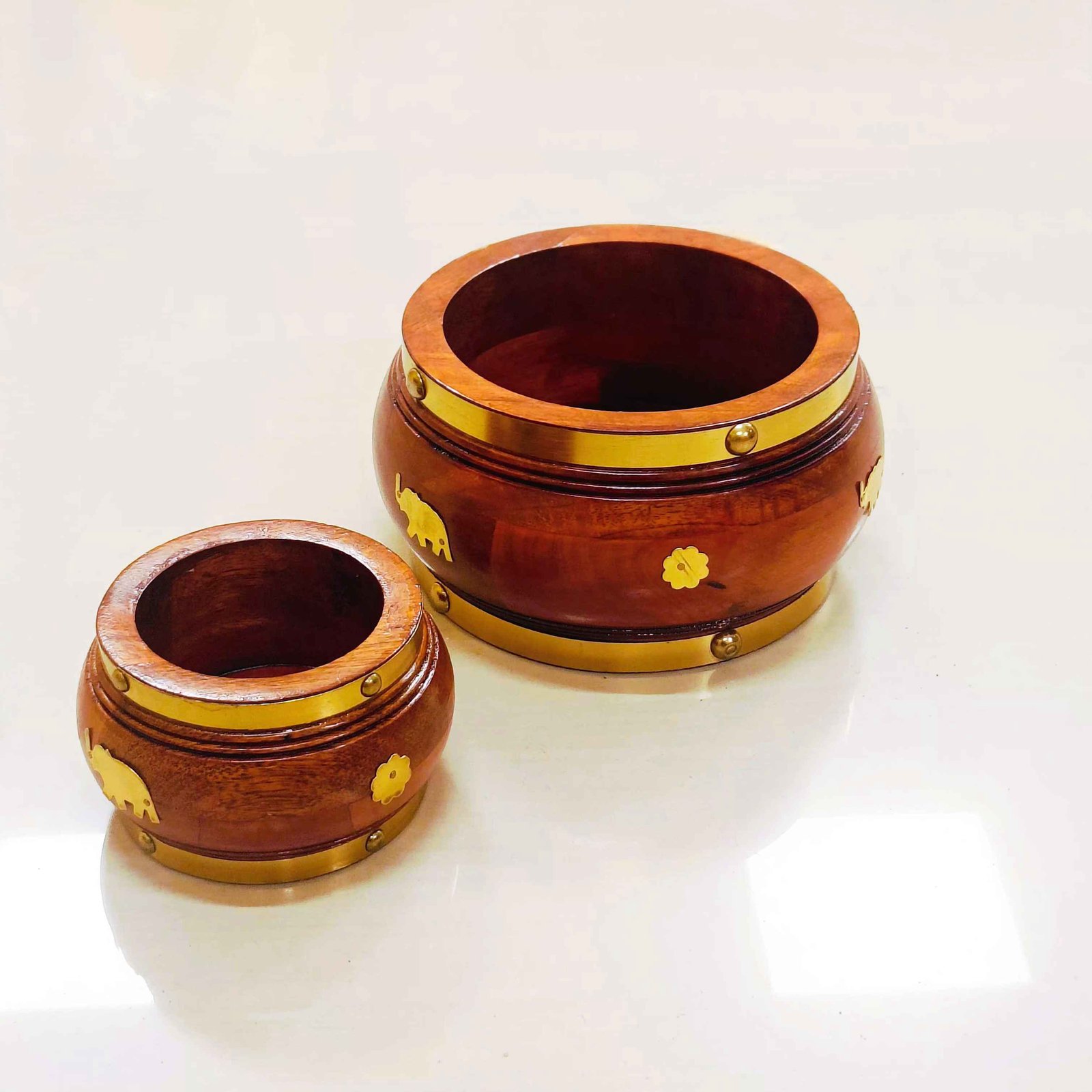 Bring home a piece of South India's rich cultural heritage with this beautifully handcrafted wooden Nazhi and Edangazhi set, an iconic representation of Kerala traditional handicrafts. These charming wooden measuring vessels were once used in every Kerala household and are now treasured as authentic South Indian décor items. Whether displayed in your living room, pooja room, or used in thematic interior settings, they add a nostalgic, rustic elegance that celebrates India's artisanal legacy.