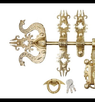A complete set of Manichitram consists of the following, Head, handle, Crams, Main Lock, Ring Puller, Side Patta, Dooms, 2 Keys, and a wide rod with variable length sizes. The complete setup fulfills every need, from providing to accessorizing the door.