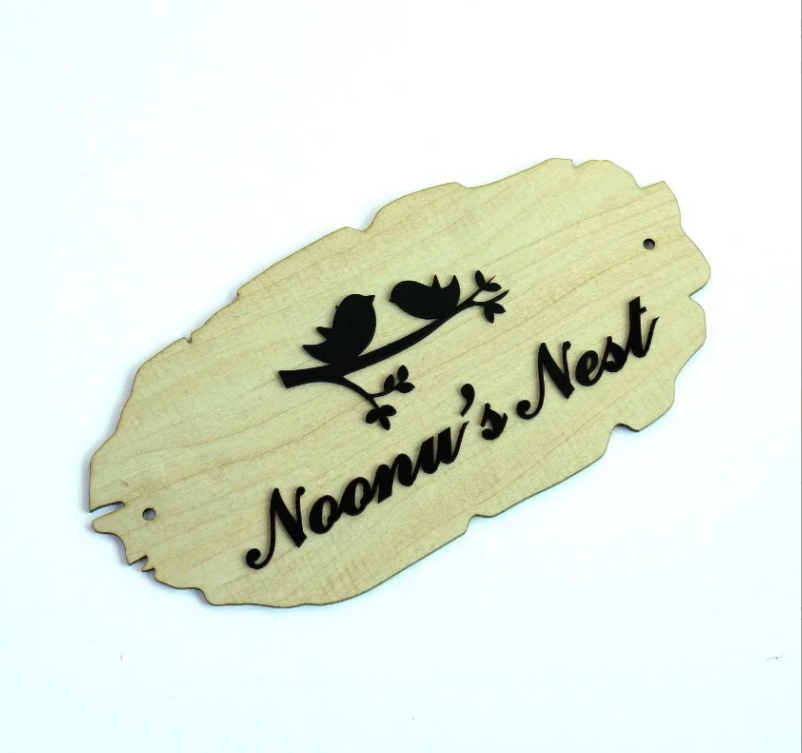 Premium customized wooden house name board crafted from durable birch wood with elegant acrylic lettering. Fully customizable in size, color, and font—perfect for modern and traditional homes.