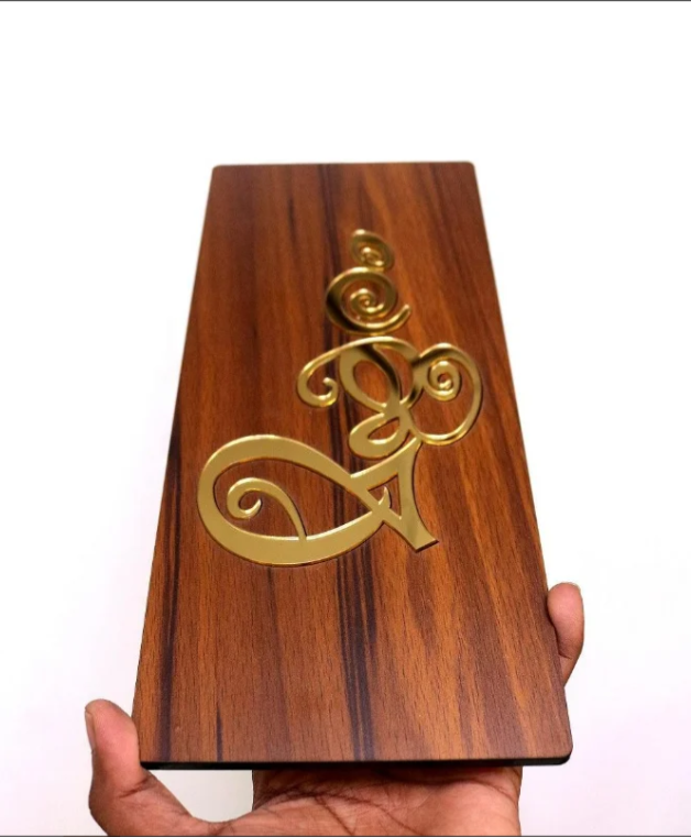 Crafted from high-quality acrylic, this name board features luxurious golden-colored lettering that adds a touch of sophistication. The sleek finish complements both contemporary apartments and traditional homes.