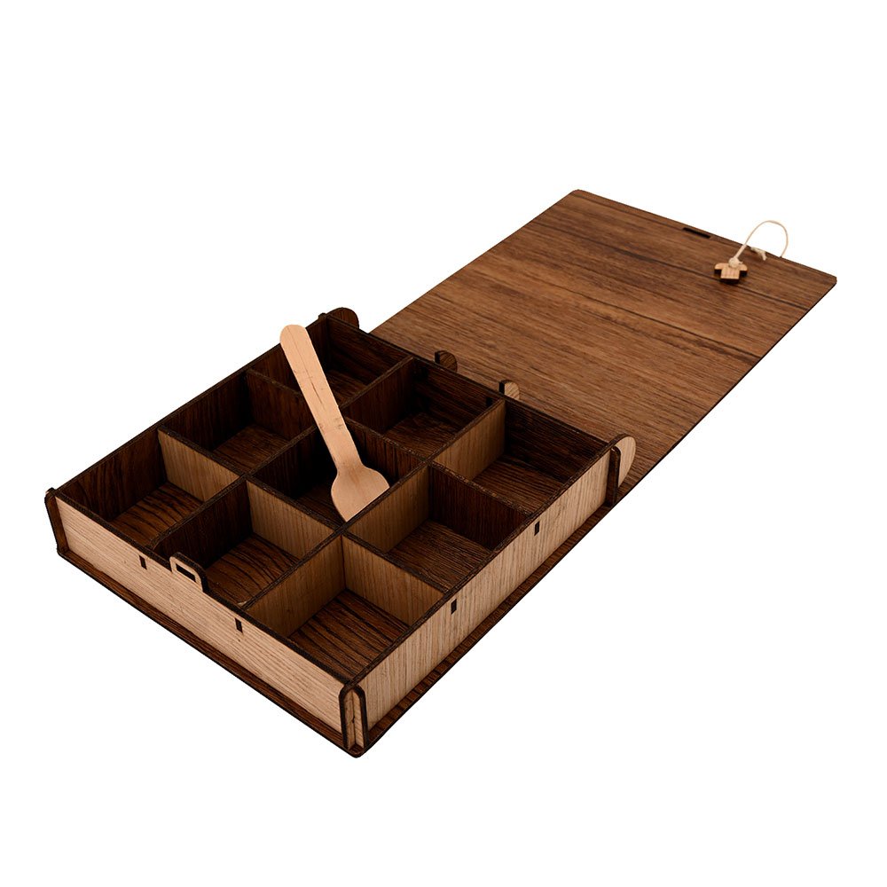 Introducing the Designer Spice Box from Mannar Craft, the perfect addition to your kitchen! Made from good-quality wood, this spice box is durable and built to last. It features a spacious interior with multiple compartments, providing ample storage for all your favorite spices.