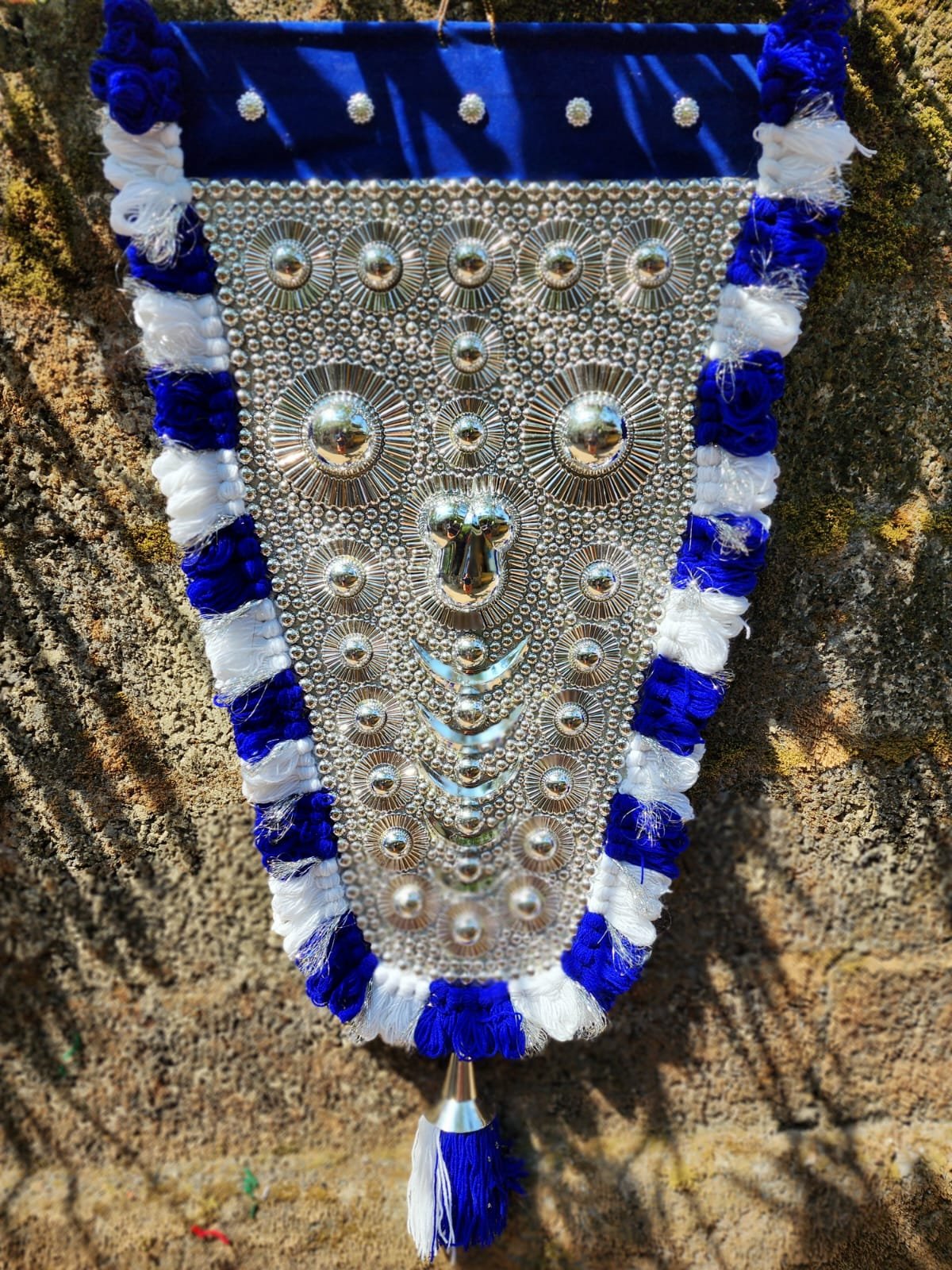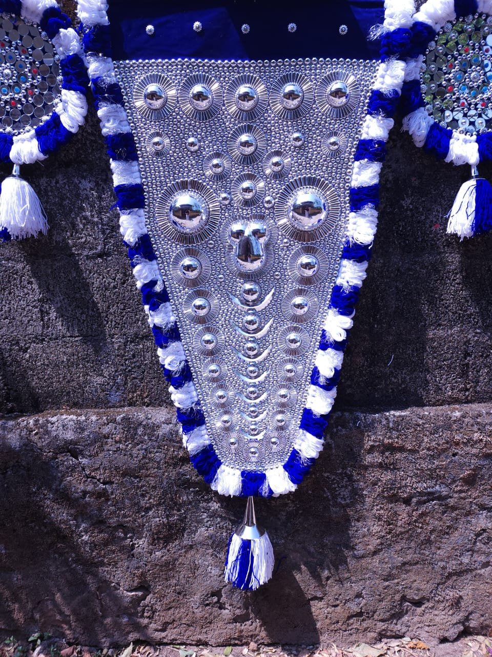 Handcrafted blue Nettipattam by Mannar Craft with elegant silver work. A vibrant elephant caparison-style wall hanging — ideal for home, temple, office, and gifting.
