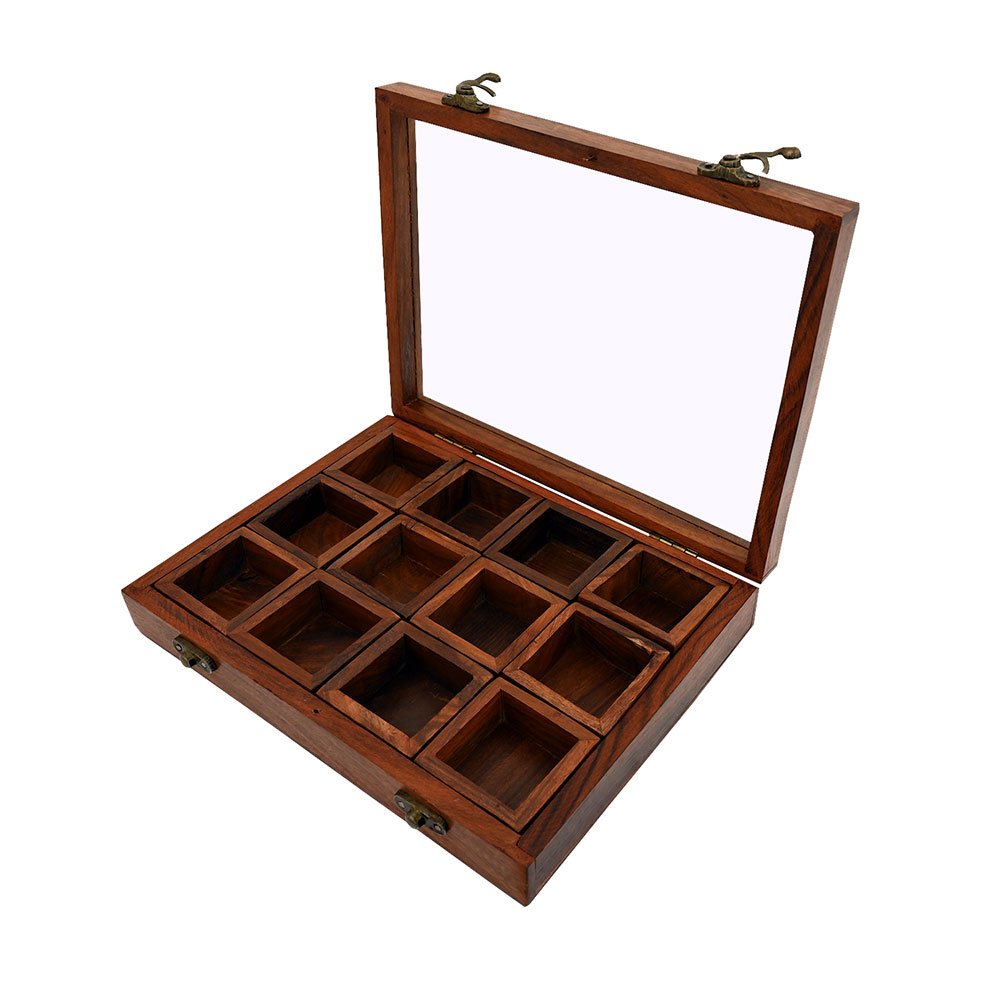Organize in style with Mannar Craft’s large handcrafted wooden spice masala box, filled with premium dry fruits. A perfect blend of tradition, utility, and elegant gifting.