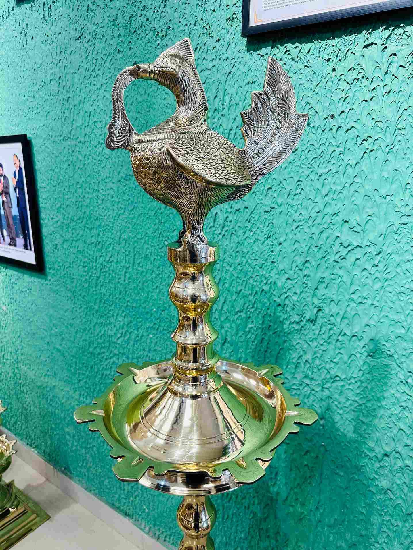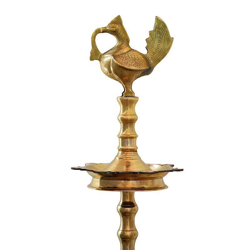 Annapakshi Vilakku, also known as Kuthu Vilakku is a traditional oil lamp with very intricate hand carvings of a mystical bird that live in heaven, known for their purity. These lamps are used for Pooja purposes apart from being used for decorative purposes.
