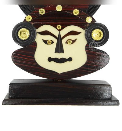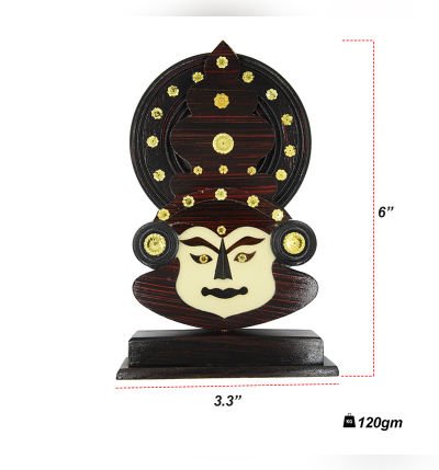 A perfectly finished and polished Handcrafted kathakali face with a wooden stand is ideal for home and office. A good showpiece for a gift.