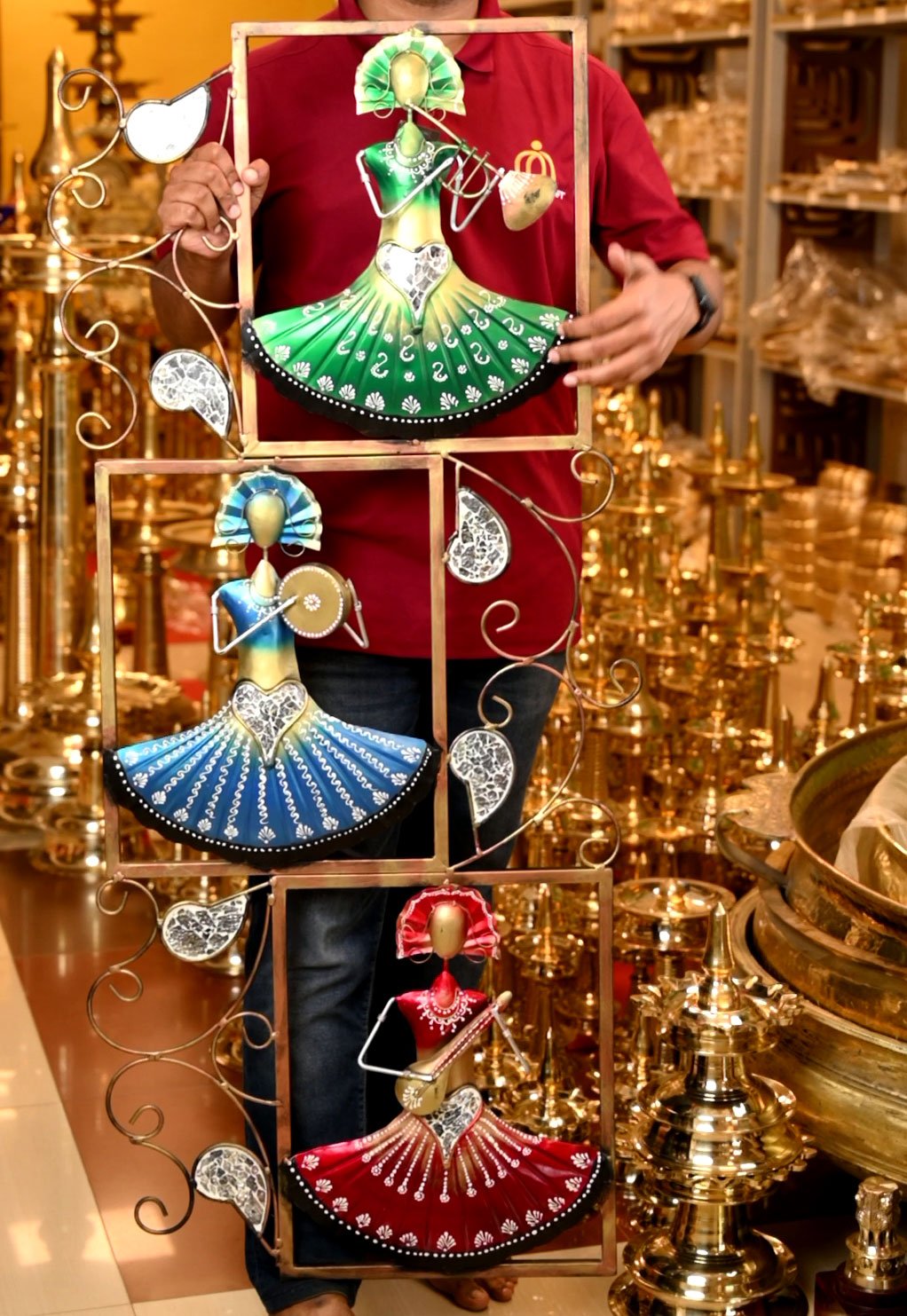Designed for those who appreciate artistic storytelling, this décor piece blends traditional inspiration with contemporary metal art. The textured finish, handcrafted detailing, and lively colors make it a true conversation starter in any space.