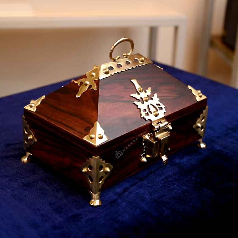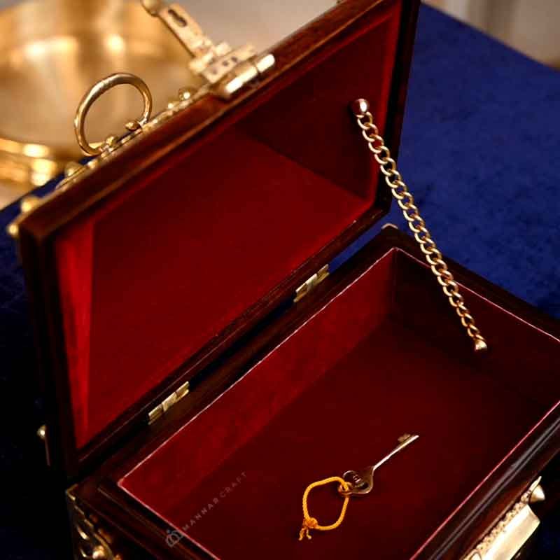 Nettoor Petti, in Kerela, has a historical significance. It was used by women of Royal families to keep their jewels and precious gems. It is also called Amadapetti. It has beautiful designs and carvings on it. Handcrafted to perfection. Made by skilled craftsman. A traditional and royal item. A perfect gift on birthdays, anniversaries and housewarming parties!