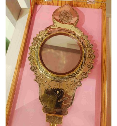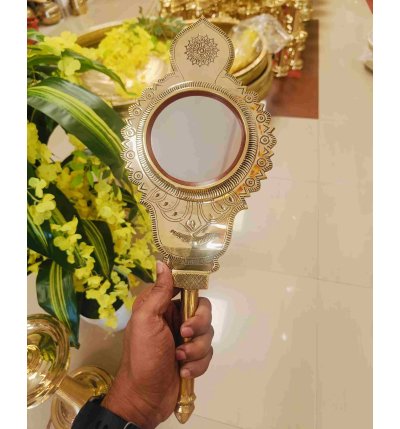 Experience the timeless beauty and cultural heritage of Kerala with this Original Handmade Aranmula VaalKannadi (4 inch). Crafted by skilled artisans using age-old techniques passed down through generations, this authentic metal mirror is made entirely of a unique metal alloy, not glass. Revered for its clarity and auspicious significance, the Aranmula Kannadi is a symbol of prosperity, tradition, and craftsmanship.