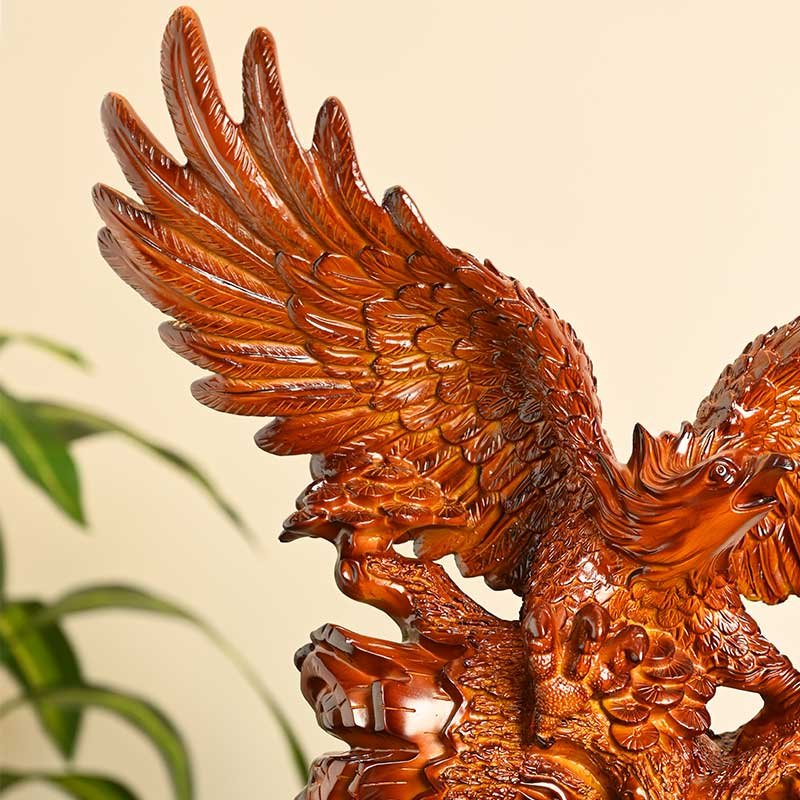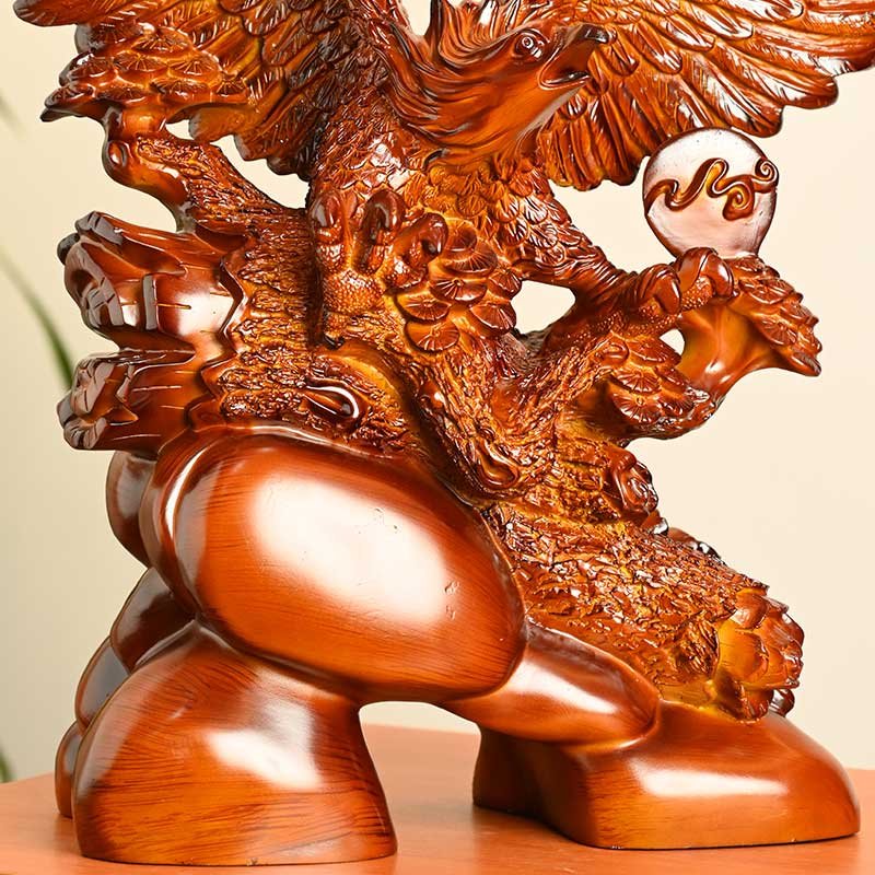 Crafted from environmentally friendly resin, this eagle statue is meticulously hand-carved to achieve a rich, wood-textured appearance. Every feather and contour reflects fine craftsmanship, delivering a premium look without the maintenance challenges of real wood or stone.