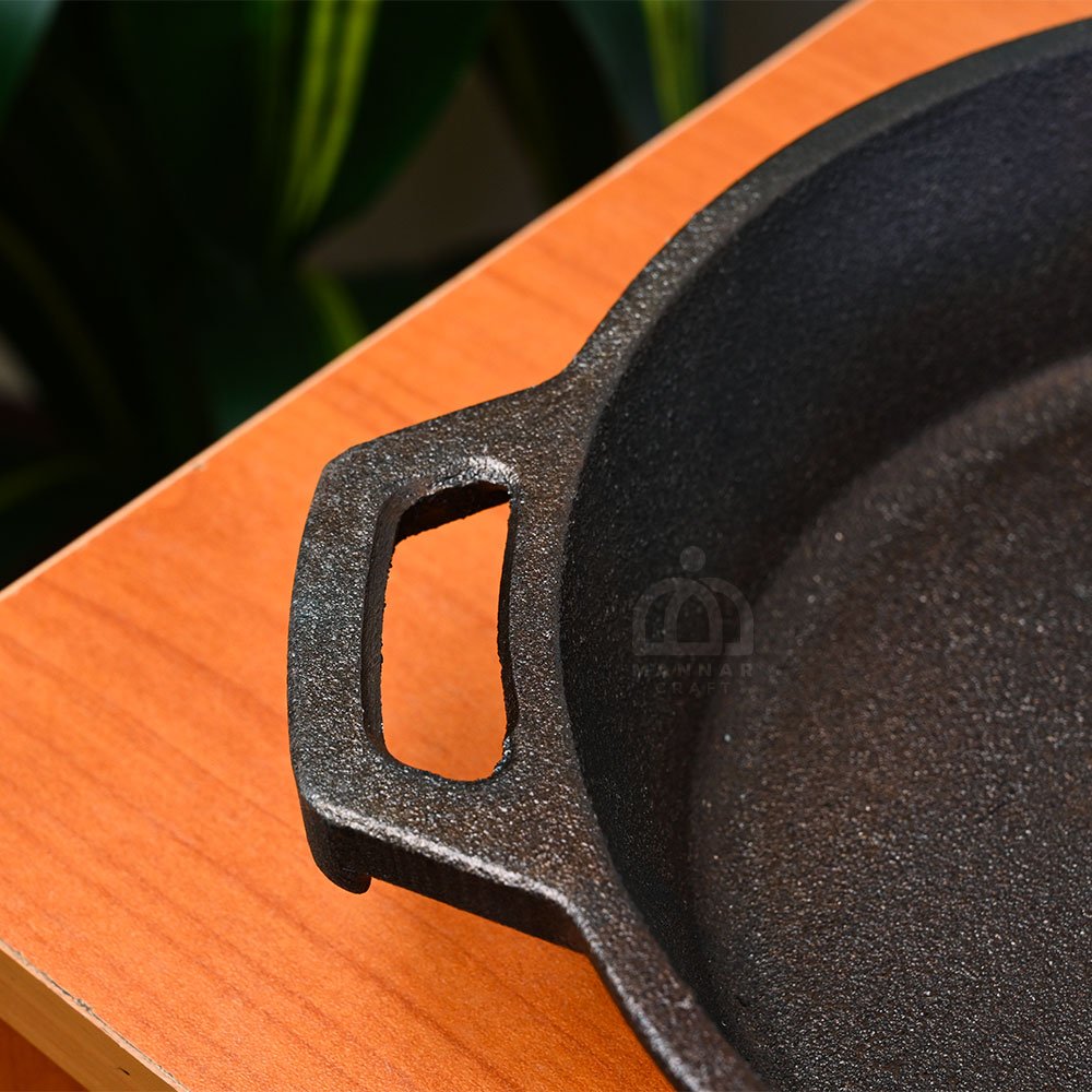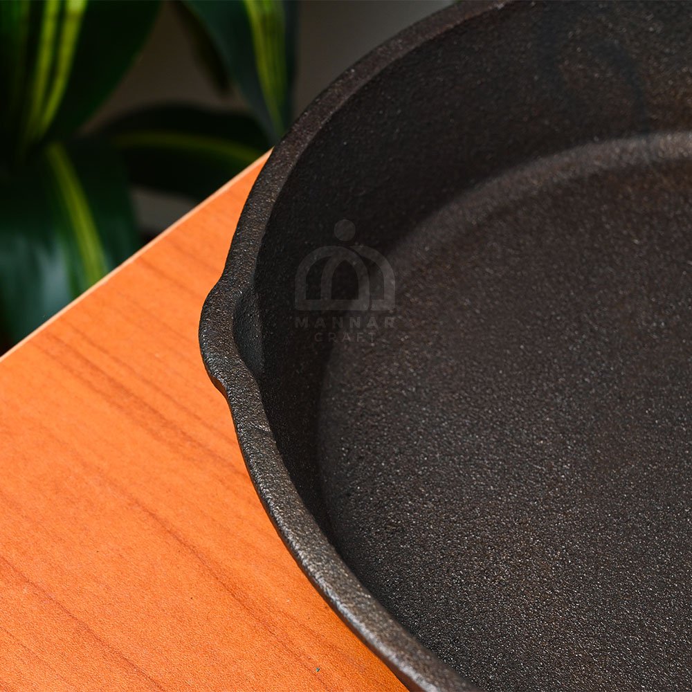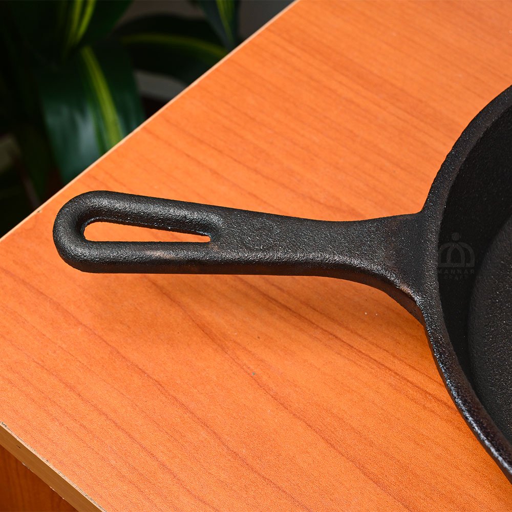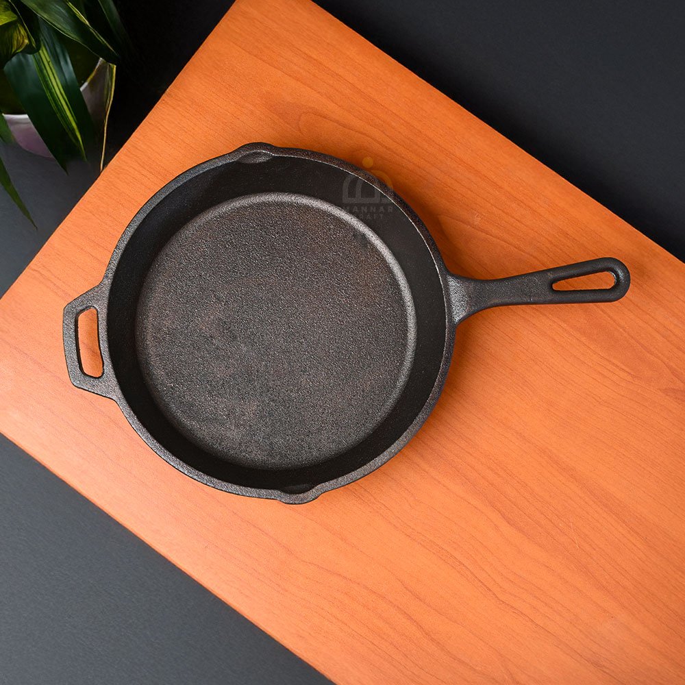 You have arrived at the right place.Go traditional with our cast iron skillet. cast iron absorbs the oil and evenly cooks them to perfection, Since this skillet is made of cast iron, food cooked in this skillet doesn’t interact with the chemicals, but instead increases the iron content in the food being cooked in it.