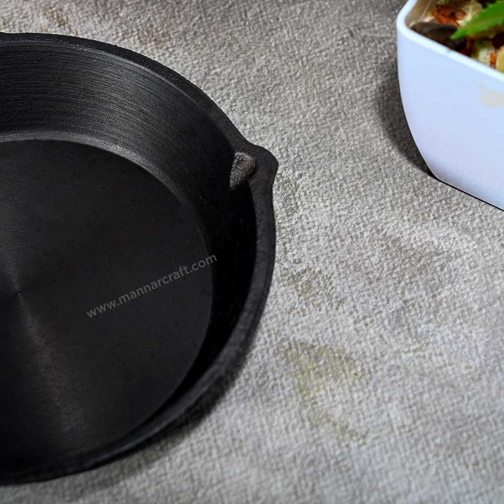 Go traditional with our cast iron skillet. cast iron absorbs the oil and evenly cooks them to perfection, Since this skillet is made of cast iron, food cooked in this skillet doesn’t interact with the chemicals, but instead increases the iron content in the food being cooked in it.