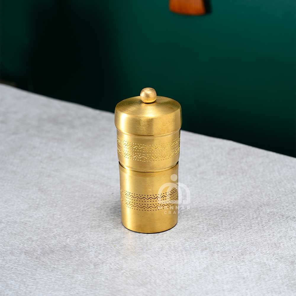Brew a perfect single serving of authentic South Indian filter coffee with this Premium Etched Brass Mini Coffee Filter. Designed with a beautiful matte finish, it combines elegance, durability, and traditional charm for everyday use.