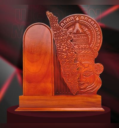 Celebrate Kerala’s rich cultural elegance with this 46 cm Premium Mahogany Wood Kerala Memento, featuring a beautifully carved half Kathakali face and intricate Kerala-themed elements. Perfect as a prestigious award, souvenir, gift, or décor piece.