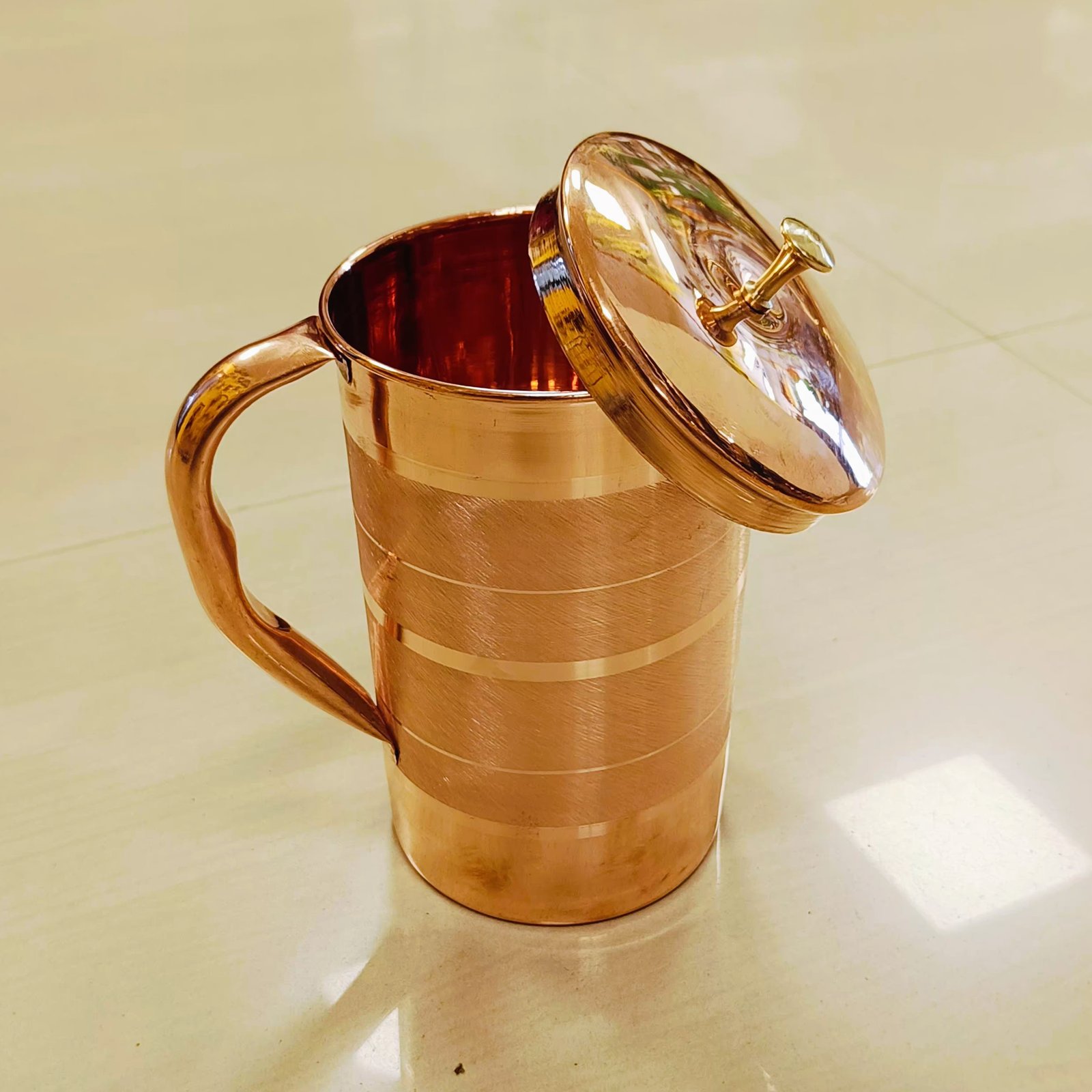 Handcrafted Premium Pure Copper Jug with Brass Knob, designed to naturally purify water and promote Ayurvedic wellness. Perfect for home, office, or as a thoughtful gift, this elegant water jar combines traditional craftsmanship with functional design.