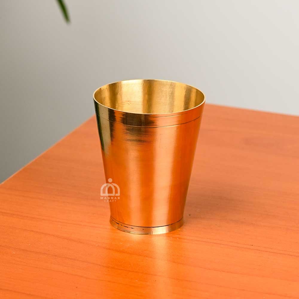 Brass utensils have been valued in Indian households for centuries due to their health benefits and durability. Drinking from a brass glass is believed to improve digestion, boost immunity, and enhance overall wellness according to Ayurvedic traditions.