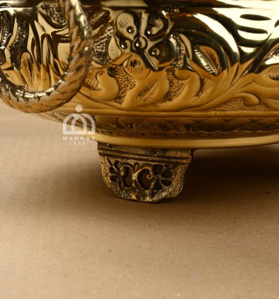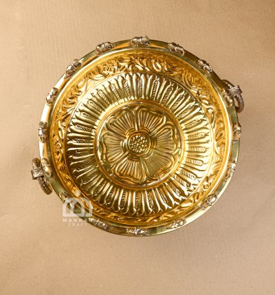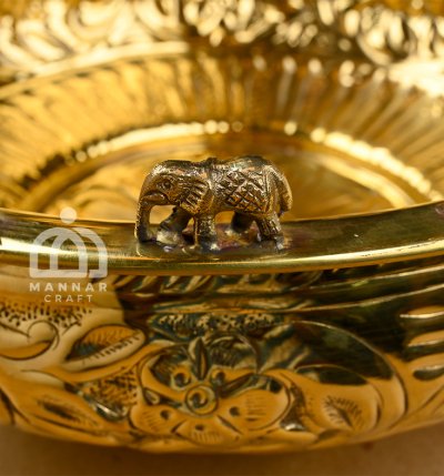 Premium Pure Brass – Handcrafted elephant uruli with ethnic carvings in brass finish