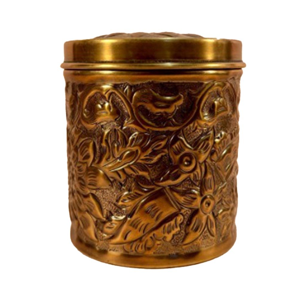 Each box is handcrafted in solid brass and features ornate embossed floral and leaf motifs, giving it a royal, old-world charm. The antique finish enhances the design, making these containers not only functional but also a statement decor piece.