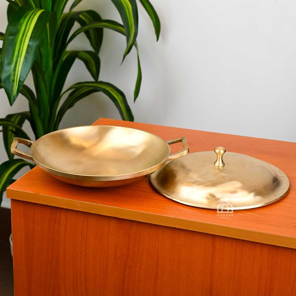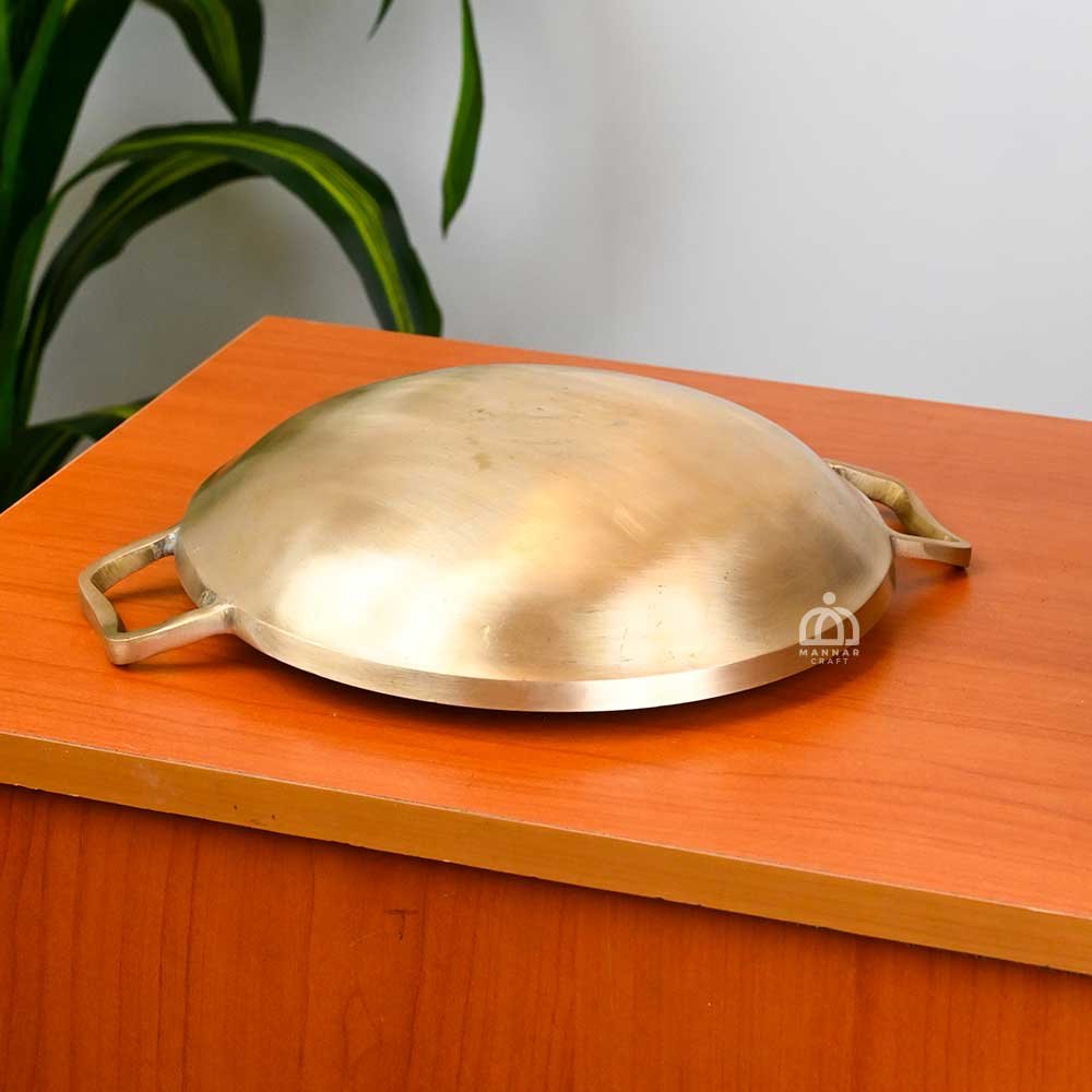Handcrafted traditional bronze appachatty fry pan with a matching lid for healthy and authentic cooking. Ideal for frying, sautéing, and preparing South Indian dishes. Durable, elegant, and naturally enhances flavor.