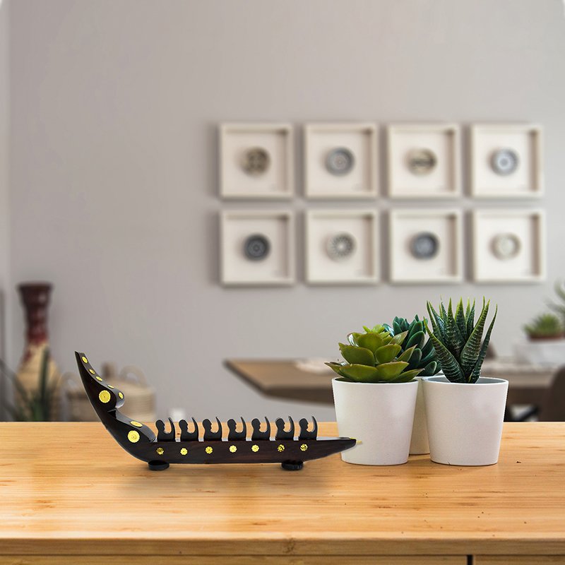 Beautifully handcrafted Kerala traditional wooden boat miniature featuring seven finely detailed men figurines. This artistic curio reflects Kerala’s rich boat race culture, making it a perfect addition to your home décor or a thoughtful heritage gift.
