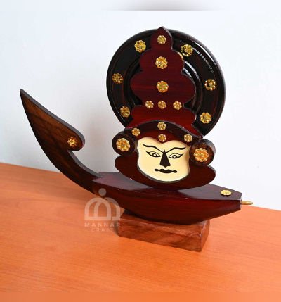 The Wooden Kerala Traditional Boat Curio Miniature with Kathakali Face is a beautifully handcrafted décor piece that captures the essence of Kerala’s rich cultural heritage.Bring home the charm of Kerala’s heritage with this beautifully crafted Woode